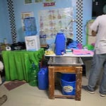 it is hard to get around because the streets are uneven and sometimes flooded. So there is always bags of sand and bits of rocks or planks to use as stepping stones. You also have to be careful not to bump your head on electrical wires or pieces of metal and wood jutting out from the makeshift houses;
